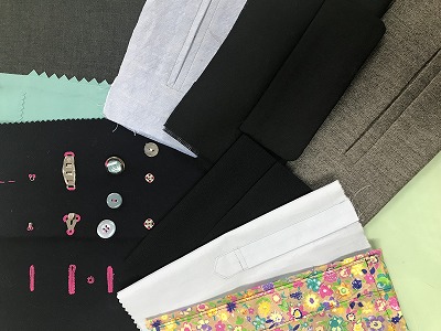 基礎縫い 釦、ホック ファスナー 前立て 袖口
